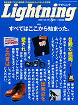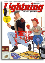 《Lightning 2009/1月号 Vol.177》P.37にスチロコの【ホースハイドレザーアイテム】が多数紹介されました。また、今回の誌面には稲妻フェスティバルのリポートが掲載されています。 |
