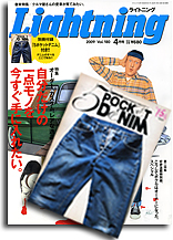 《Lightning 2009/4月号 Vol.180 別冊付録「5ポケットデニム」》P.112に、スチロコの【D51XXストレートジーンズ】が紹介されました。 |