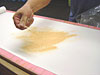 豆をすりつぶした物と海草を煮て出た汁を混て地入れ糊を作る。