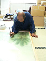 THE STEAM LOCOMOTIVEが来春リリースするハワイアンシャツは、すべてメイドインジャパン。すべて地元製作にこだわります。その全容を明らかに。まず、図案を中江氏に書き上げてもらう。その図案を元に伊勢型を作る。